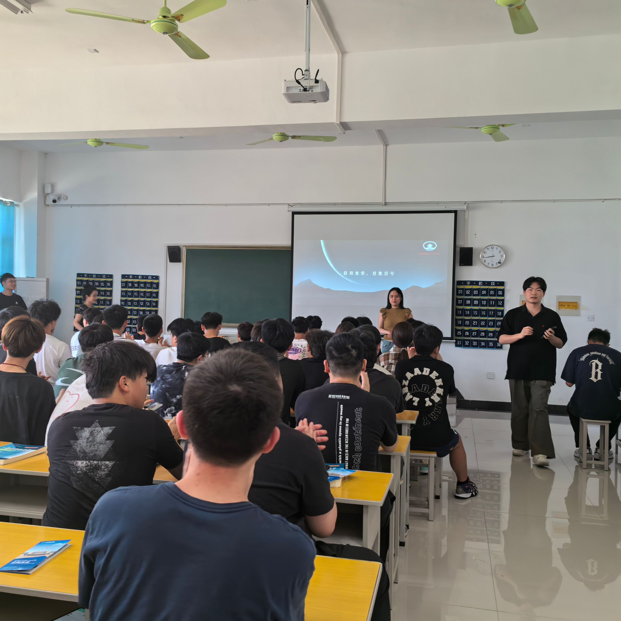 在教学楼2501,湖北浩天新能源公司招聘负责人陈浩对公司的企业发展优势、产品定位、运营构架、岗位职责和福利待遇等做了详细介绍,并与同学们展开深入交流,鼓励大家主动出击,心动不如行动。不要妄自菲薄,也不可好高骛远,号召在场毕业生充分发挥自身优势和才干,与浩天新能源公司携手共进,让梦想腾飞。