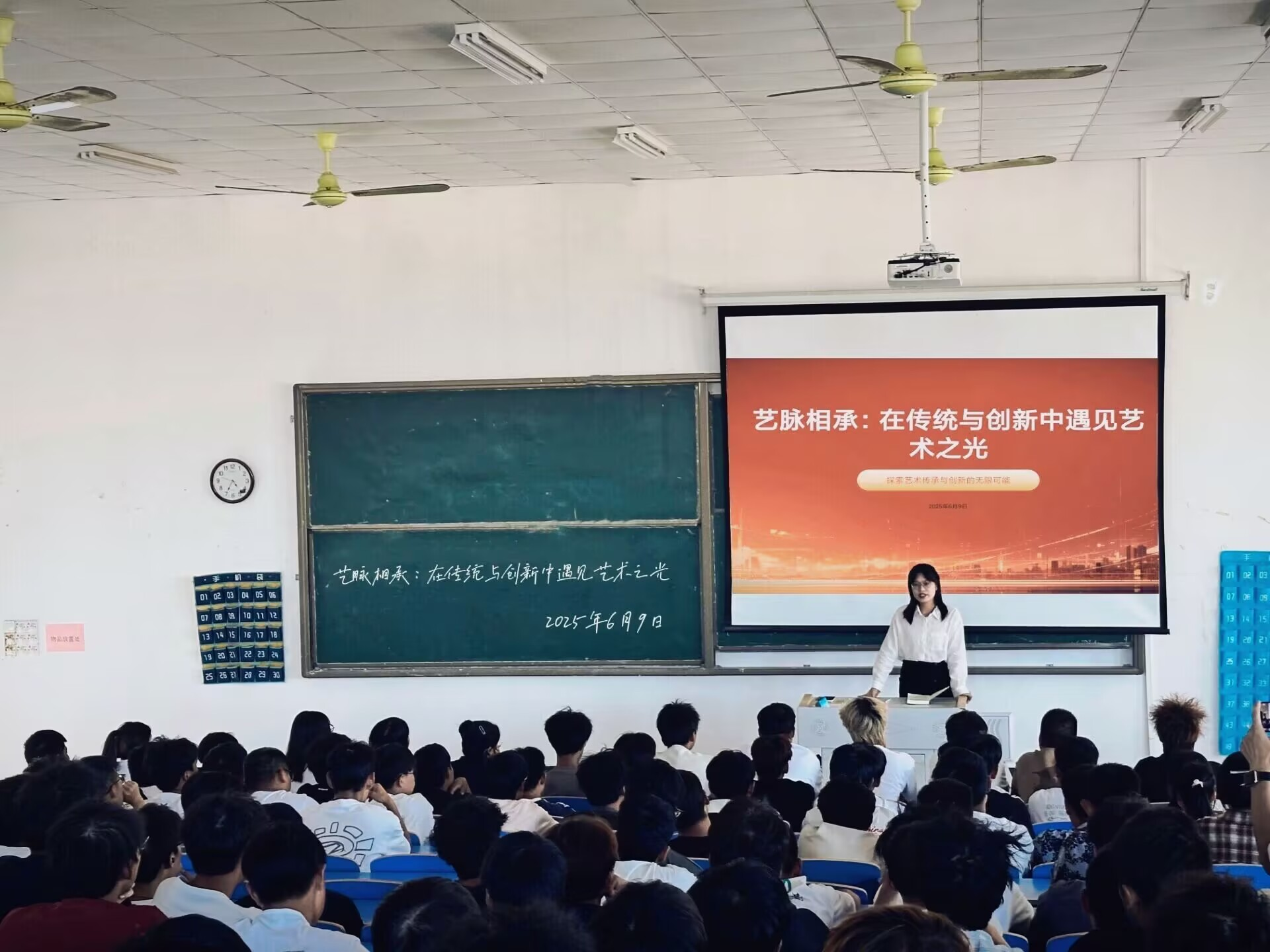 6月8日晚,一场主题为“在传统与创新中遇见艺术之光”的专题讲座在3405教室开讲,本次讲座由智能制造学院辅导员柯婷精心筹备并主讲,吸引了学院内众多对艺术怀揣热忱的学生前来聆听。