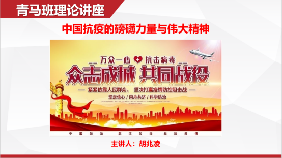 此次在线战“疫”精神主题教育系列活动包括三种形式:一是开展战“疫”精神主题在线知识竞赛活动。青马班班主任胡兆凌老师利用在线软件编撰了一套在线知识竞赛题库,内容涵盖习近平总书记抗“疫”系列重要讲话和疫情防控科普知识,青马班学员在5月7日-14日间通过手机二维码进入答题页面完成竞赛,不少同学知识掌握全面,答题满分。二是开展青马班志愿者战“疫”经历在线分享会。疫情期间不少青马班学员在家乡就地志愿参加防控工作,5月16日上午9点,胡兆凌老师组织通过钉钉软件开展了志愿者战“疫”经历分享会,王永红同学给大家分享了自己坚守社区防控的照片,谈到作为大学生要主动承担社会责任;王紫微同学讲述了自己在疫情期间从担心害怕到主动参与社区防控的心路历程,认为战“疫”是自己一生难得的经历与难忘的回忆;郑昊昊同学谈到自己在陕西老家积极参与社区防控,用实际行动展现湖北学生的担当。三是开展战“疫”精神主题讲座。5月16日上午10点,胡兆凌老师通过钉钉软件给同学们作了主题为“中国抗疫的磅礴力量与伟大精神”的讲座,解读了中国抗疫的制度力量、领导力量、组织力量和担当力量,勉励同学们学习中国抗疫体现出的坚韧不拔的奋斗精神、无私奉献的牺牲精神、众志成城的团结精神和敢于胜利的进取精神。