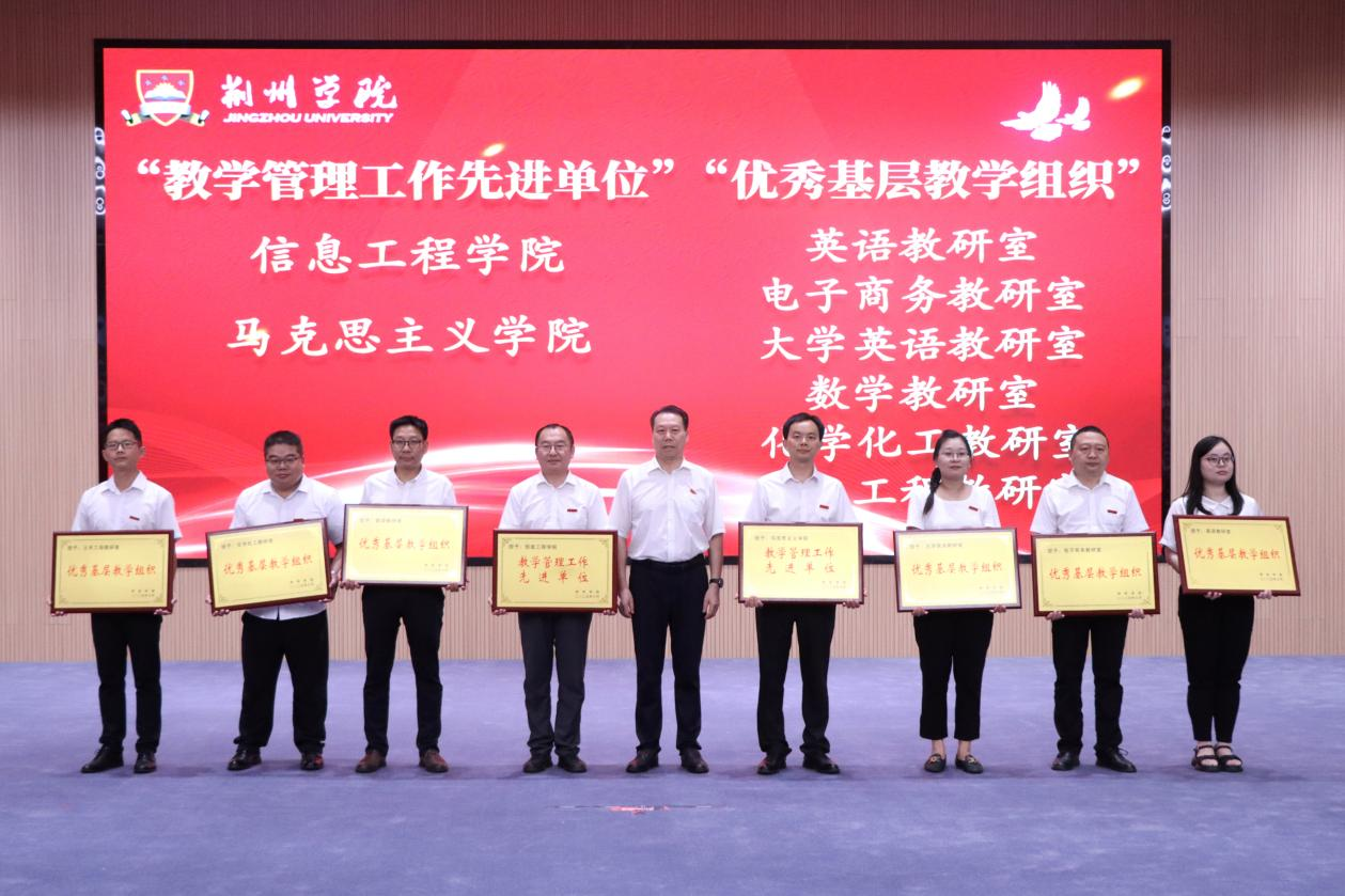 随后,大会依次对各获奖单位与个人进行了表彰,集团领导、学校领导依次为受表彰教师代表颁奖。本次表彰大会对“最美教师”“第二届青年教师讲课比赛”“教学管理工作先进个人”“教学管理工作先进单位”“优秀基层教学组织”“2025届毕业生考研先进单位”“教学质量优秀奖”“师德师风标兵”“文明个人”“文明单位”“校长教学质量奖”等作出表彰。