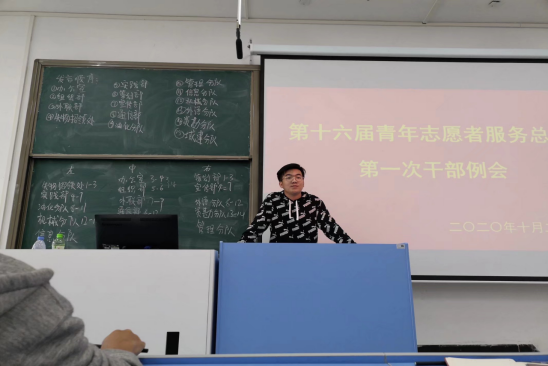 本网讯 为增强志愿者干部对志愿工作的认识,进一步提高其责任意识和工作能力,我院青年志愿者服务总队第一次干部例会于10月25日上午10时在教学楼2201教室顺利举行。出席本次会议的有青年志愿者服务总队队长郑昊昊,常务副队长王岚星,总队副队周郑天、高哲轩、陈亚男、许煌、易江山、孙鹏宇,及大一大二干部共计200余人,办公室主任卢立昊担任本次会议主持人。