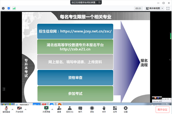 本网讯(通讯员:代婕) 为切实将学院的专升本工作抓实抓好,帮助同学们更好地了解专升本相关政策,及时把握好提升学历的机会。3月10日晚七点,外国语学院/艺术与教育学院面向2023届专科生召开线上专升本考试宣讲动员会。外国语学院/艺术与教育学院副院长王浩、外国语学院教研室主任郑丹丹、学前教育专业专任教师周安琪、外国语学院团总支书记黄德虎、艺术与教育学院团总支书记何龙参会,本次会议由熊艳玲老师主持。