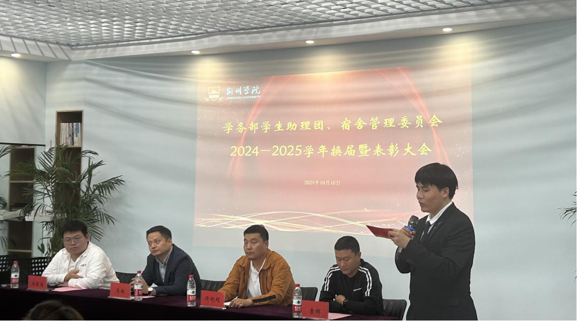 站在新起点,开启新未来。为促进各部门之间团结协作,明确各部门的工作目标。学务部学生助理团和宿舍管理委员会于10月16日12:15 在大学生创业中心307活动室召开学务部学生助理团暨宿舍管理委员2024-2025学年年换届表彰大会,学务部部长许明超、学生工作处副处长肖巍、宿管科副科长袁辉,学籍科王俊博出席会议,学务部学生助理团以及宿舍管理委员会全体干部及干事代表员参与本次会议。