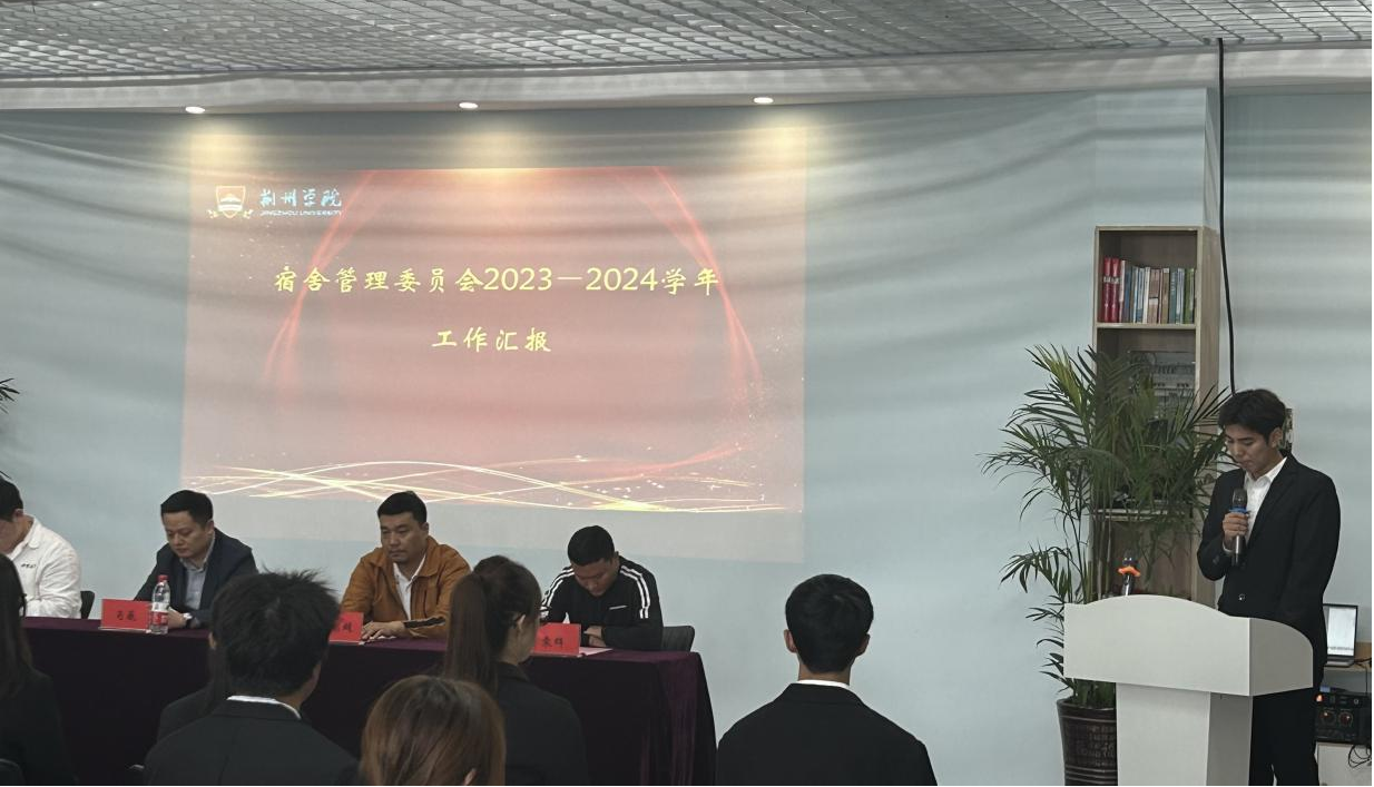 会议伊始,主持人杨炅昊发表开场致词,接着由宿舍管理委员会主席何文宇与学务部学生助力团主席李诗彤分别做了2023-2024学年宿舍管理委员会工作汇报和学务部学生助理团工作汇报,总结了过去一年里助理团和宿管委的工作经历,以及所取得的成绩和存在的问题与不足。同时提出了更高的要求和期望。