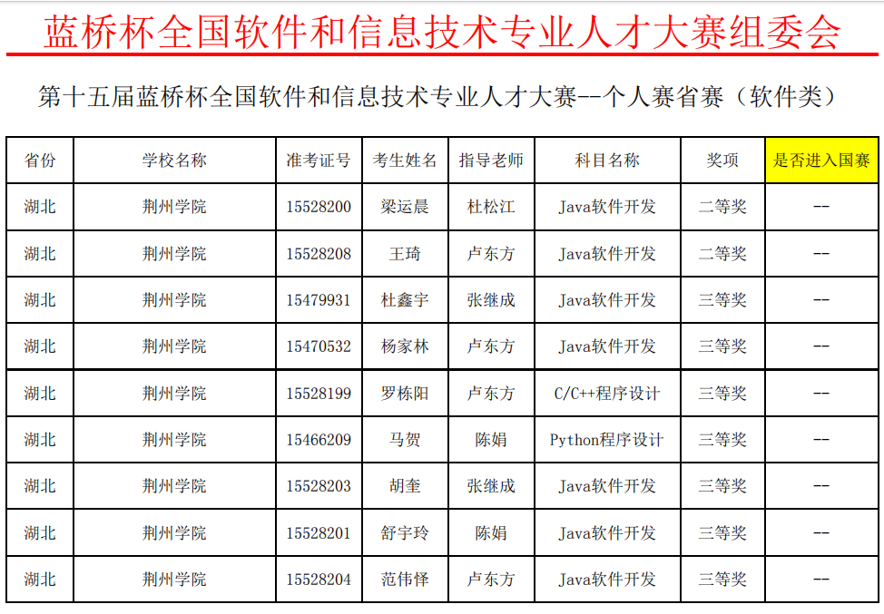荆院学子在“蓝桥杯”省赛中再创历史佳绩