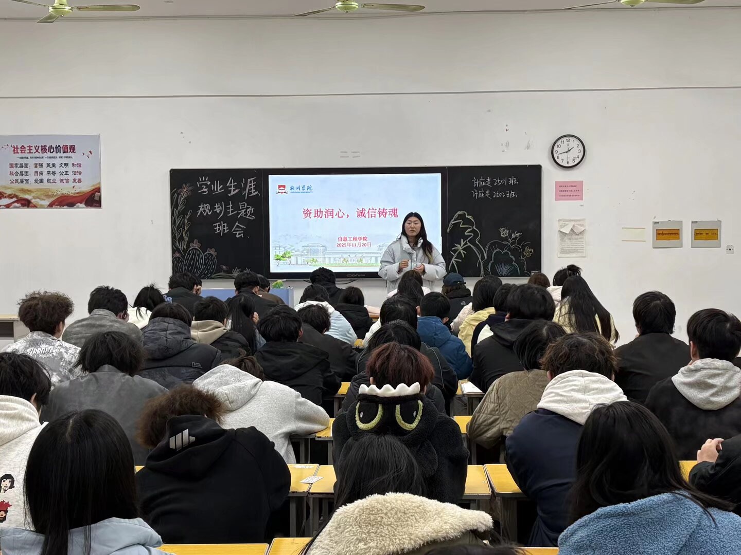 为深入贯彻落实立德树人根本任务,进一步加强学生资助政策宣传力度,切实提升资助育人实效,引导学生树立诚信意识、常怀感恩之心,11 月 20 日,信息工程学院组织各年级班级全面开展诚信感恩教育主题班会,让诚信之风浸润校园,让感恩之情温暖人心。