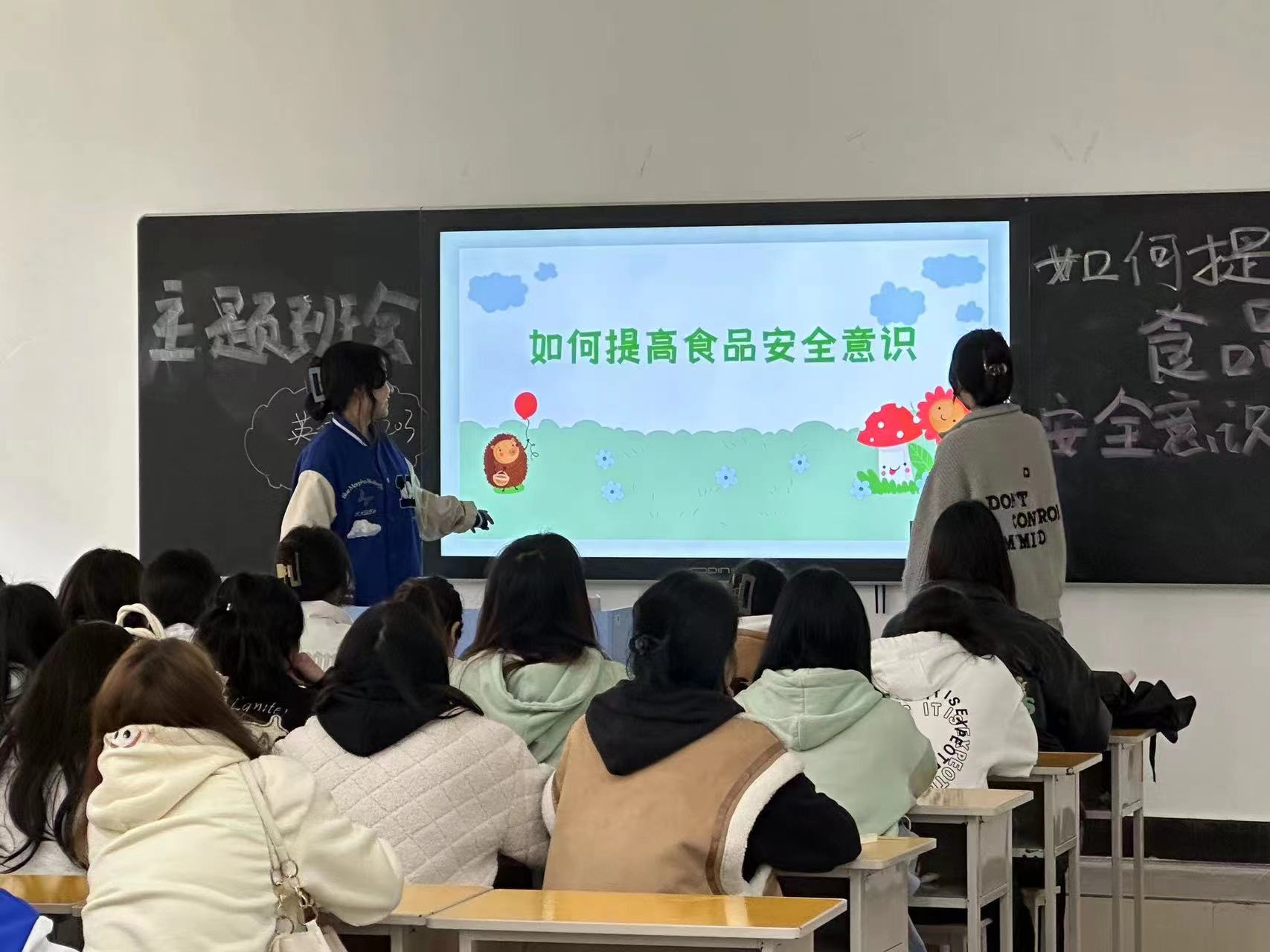 本网讯 为了增强学生食品安全知识,提高学生食品安全自我保护能力,培养学生良好的饮食习惯。4月3日,校园服务管理中心与外国语学院组织22级新生召开食品安全主题班会。  各班级通过PPT展示向同学们普及了食品安全知识,如何辨别安全食品、食品的标志标识以及什么是食品添加剂,提醒同学们不购买“三无产品”。