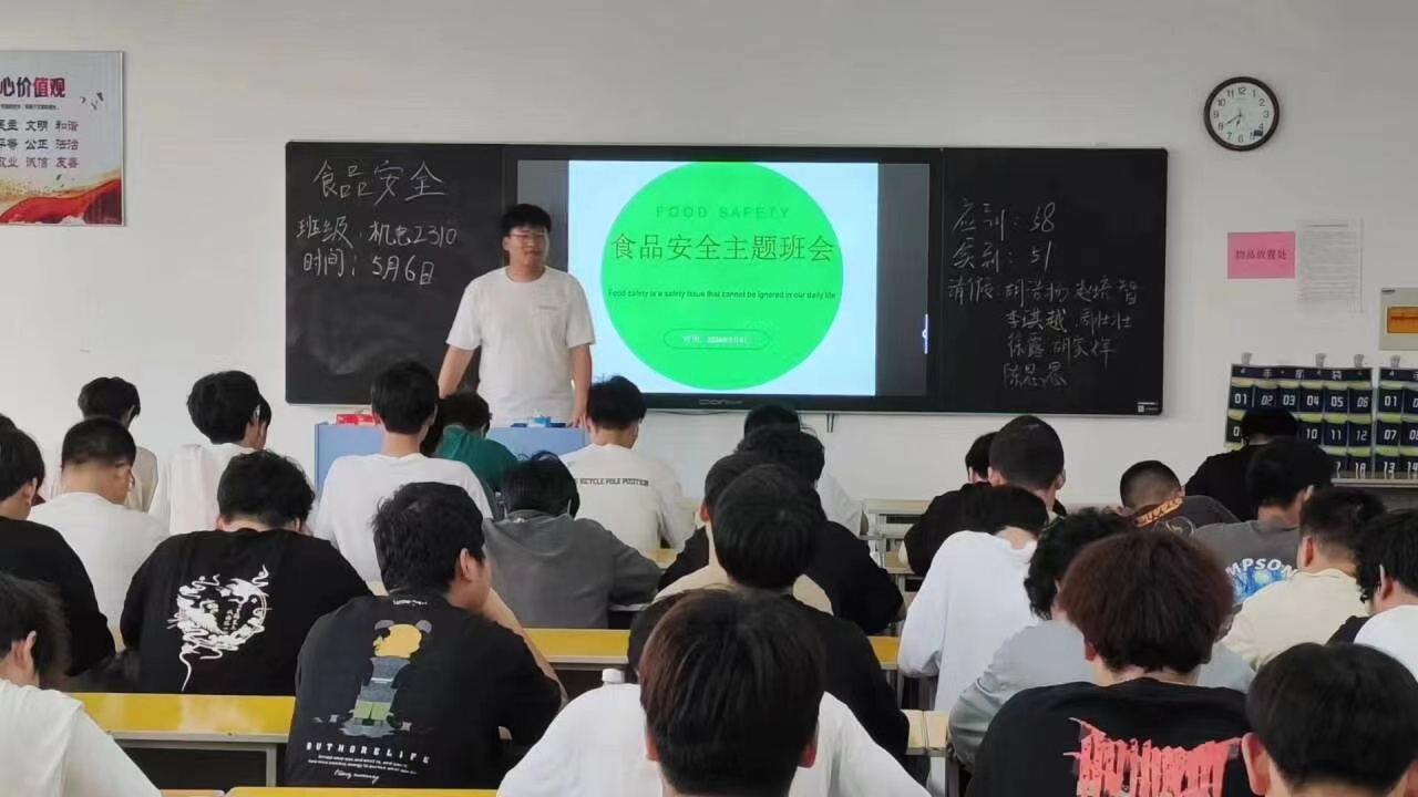 本网讯为了增强学生食品安全知识,提高学生食品安全自我保护能力,培养学生良好的饮食习惯。5月6日,膳食服务中心与智能制造学院组织23级新生召开食品安全主题班会。