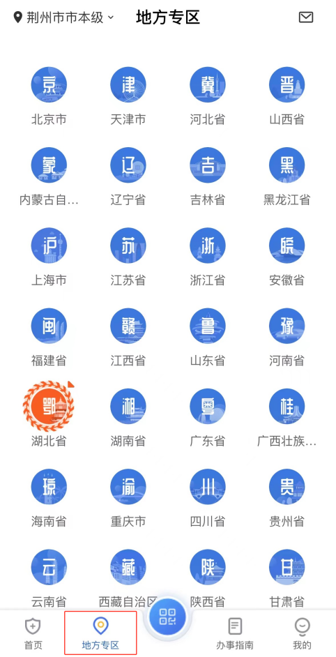 4、若为外省参保办理暂停,可下载国家医保服务平台APP,选择页面底端的“地方专区”模块,选择相应的省份,进行办理。