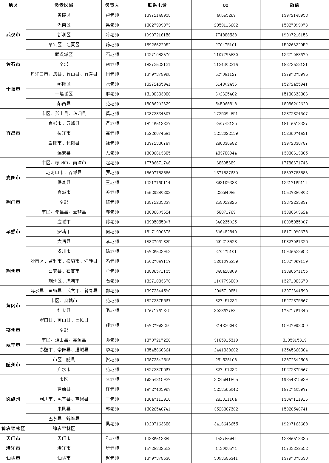 WilliamHill中文官方网站2024年湖北省招生宣传负责人及联系方式